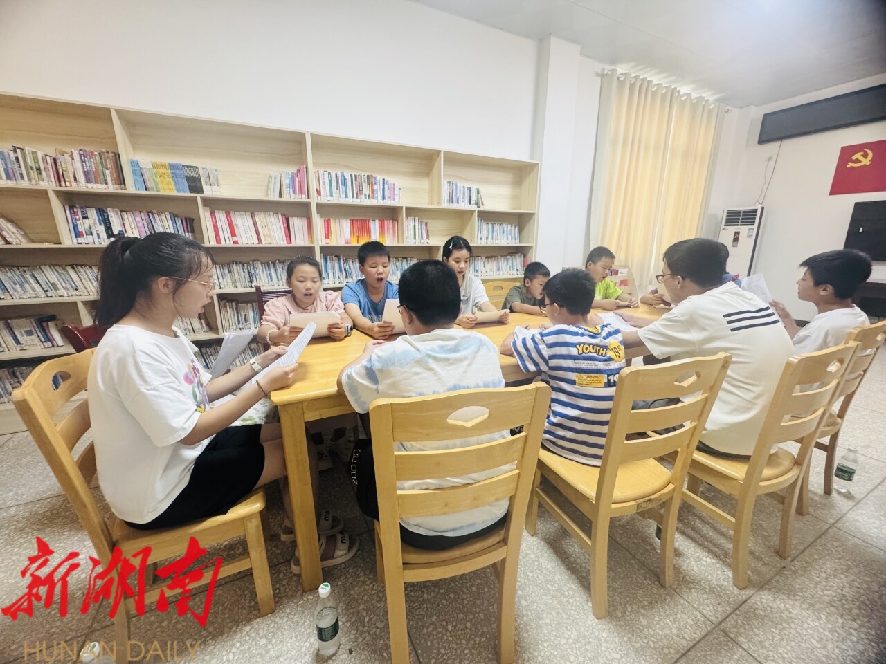 湖南日报·新湖南客户端7月25日讯(通讯员 李怡帆 周杰) 7月25日下午,祁阳七里桥镇早禾冲村农家书屋书声琅琅,十余名村内少年儿童在老师的带领下开展了一场以“品读经典,感悟松树品格”为主题的阅读活动。