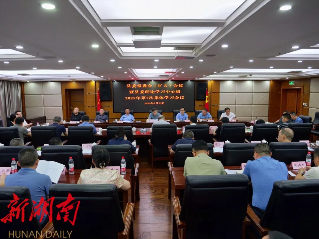湖南日报·新湖南客户端7月25日讯 (通讯员 杨柳)7月25日,县委常委会(扩大)会议暨县委理论学习中心组2025年第7次集体学习举行。县委书记曹飞主持学习,全体在职县处级领导、县直相关单位主要负责人参加。