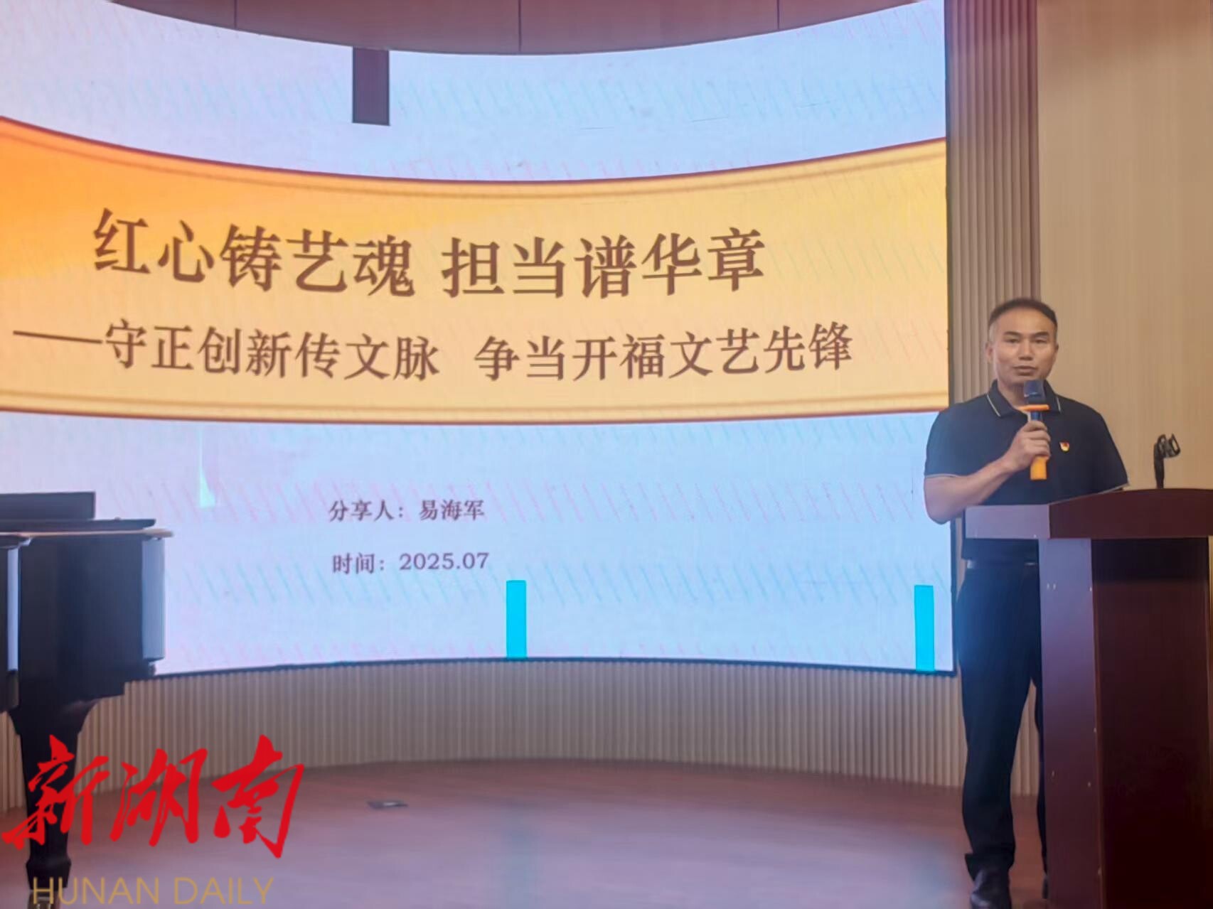 活动采用“党建引领+文艺”模式,以“思想铸魂+艺术抒怀”为主题,邀请区文联主席易海军讲授《红心铸艺魂 担当谱华章》专题党课,号召文艺工作者们勇当先锋,扎根人民沃土,厚植红色基因,激发创作热情。