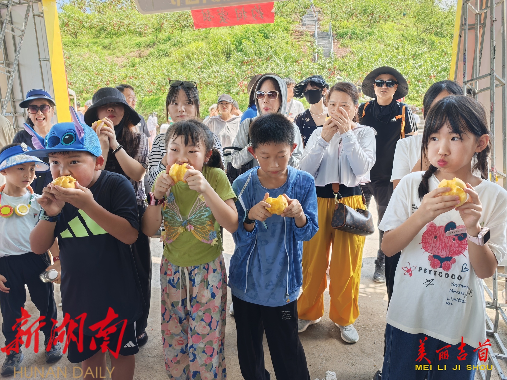 吉首市融媒体中心7月26日讯(全媒体记者 向军 谢黎黎 通讯员 向琴)7月26日,吉首市河溪镇铁岩村杉湾种植专业合作社黄桃园开园,吸引众多游客前来采摘。