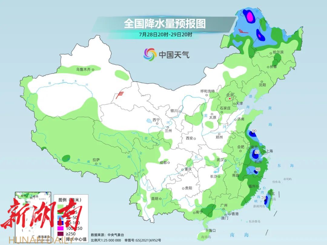 并且未来几天热带低值系统依然活跃,东海南部一带还将有新的低值系统发展起来,并将西行靠近华东。因此,华东等地也将持续多雨。像是杭州,一直到8月1日几乎每天都会和雨水碰面,多以小到中雨为主。