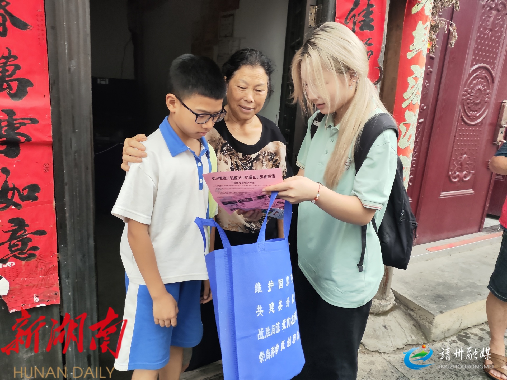 靖州融媒7月25日讯 (通讯员 唐传宁 杨珽杰 易红 蒋谩鸿)7月24日,靖州苗族侗族自治县渠阳便民服务中心、团县委联合西北政法大学 “渭水苗岭” 普法团,开展普法与安全知识宣传活动。