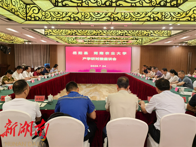 湖南日报·新湖南客户端7月28日讯(通讯员 张帆 黄阳娇) 7月24日,湖南农业大学党委副书记、教授陈光辉一行来岳阳县开展产学研对接工作,调研岳阳县农业产业发展现状,开展技术需求对接交流,加强校地科技成果转化合作。县委副书记、县长吴光文,副县长李樱出席,相关部门负责人陪同。