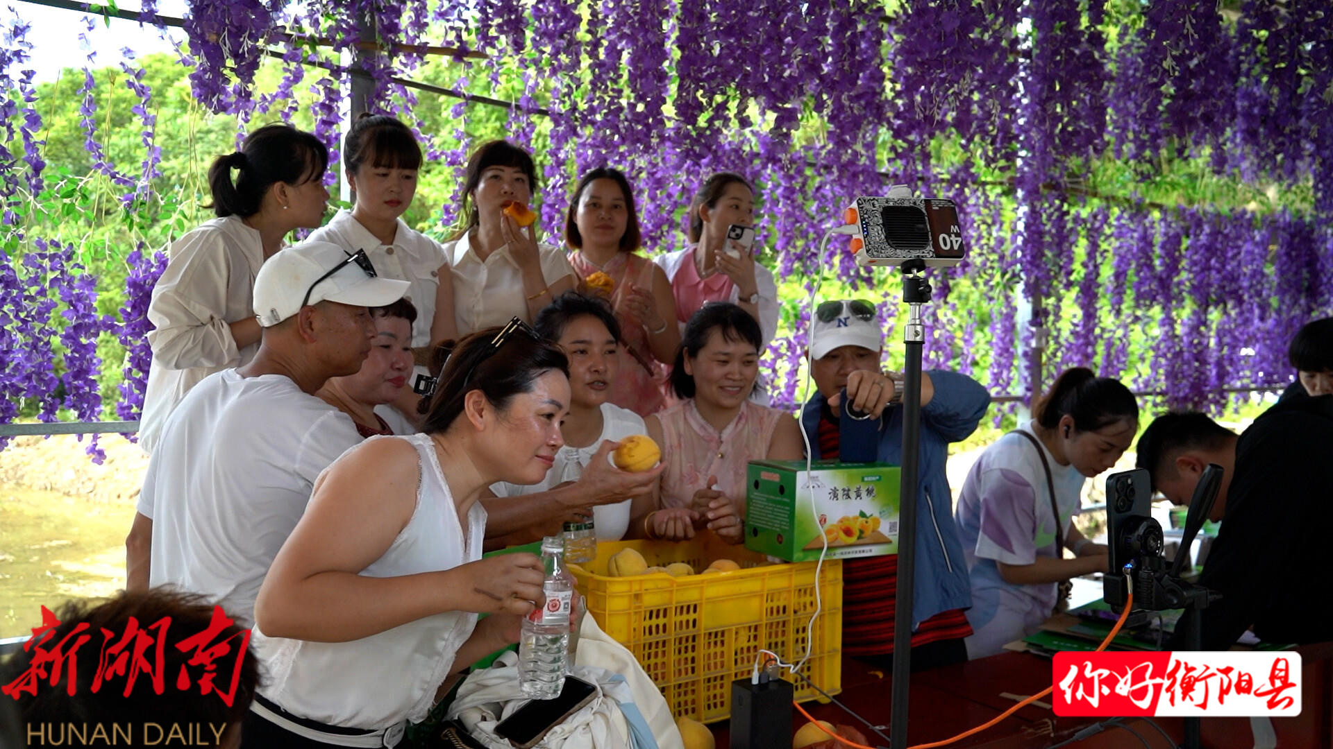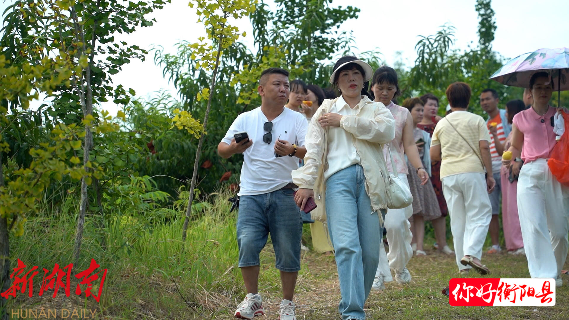衡阳县融媒7月28日讯(记者:丁源) 缤纷夏日,瓜果飘香。7月26日,演陂镇五一村的黄桃基地迎来开园,正式拉开今年黄桃采摘季的序幕。开园首日便吸引了百余名游客前来尝鲜,桃林间欢声笑语不断。