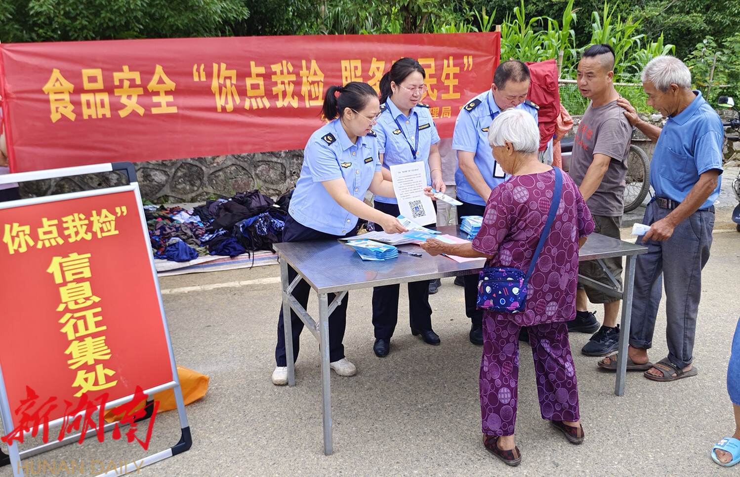 湖南日报·新湖南客户端7月28日讯(通讯员 杨丽莎 汪艳丽) “你点我检是什么?要怎么参与?我想抽检什么食品,就能马上抽检吗?”近日,宁远县市场监督管理局检验中心的快速检验车开进乡村,把“你点我检”活动带到群众身边,向大家宣传抽检知识,征集抽检意见,发动群众积极参与到食品抽检中来。