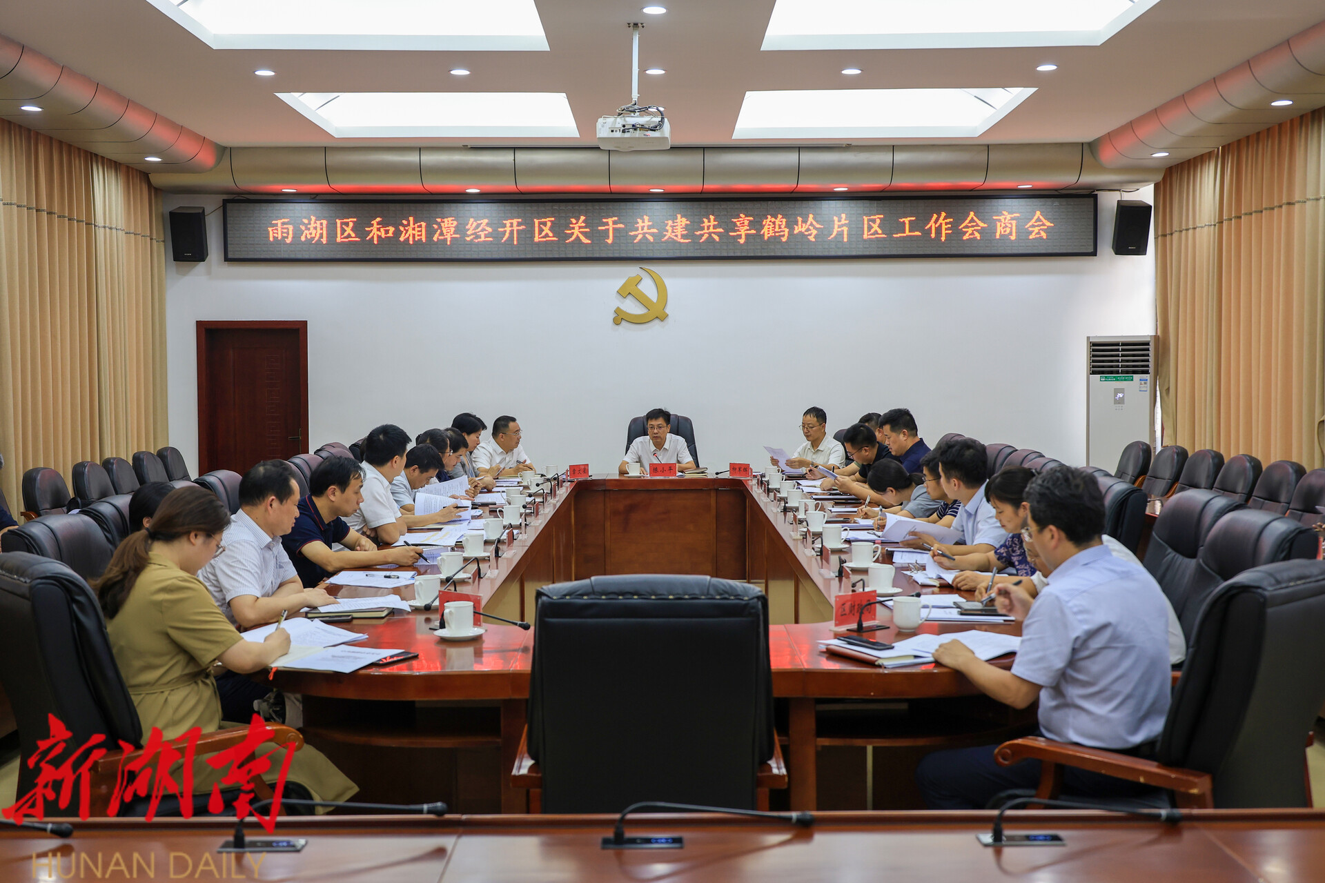 雨湖 融媒7月25日 讯 (记者 朱文捷)7月25日下午,雨湖区和湘潭经开区关于共建共享鹤岭片区工作会商会议召开。区委书记陈小平主持会议。区委副书记、区长柳军辉,湘潭经开区新发展有限公司党委副书记章文星,区领导曾铁军、曹晓娟、陈荡漾等参加。