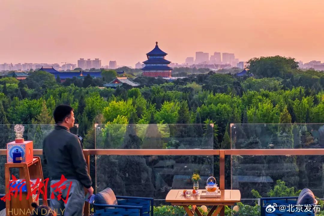 为方便市民和游客从高处欣赏中轴线景色,中轴线周边很多高空露台对外开放。(图源:微博“北京发布”)