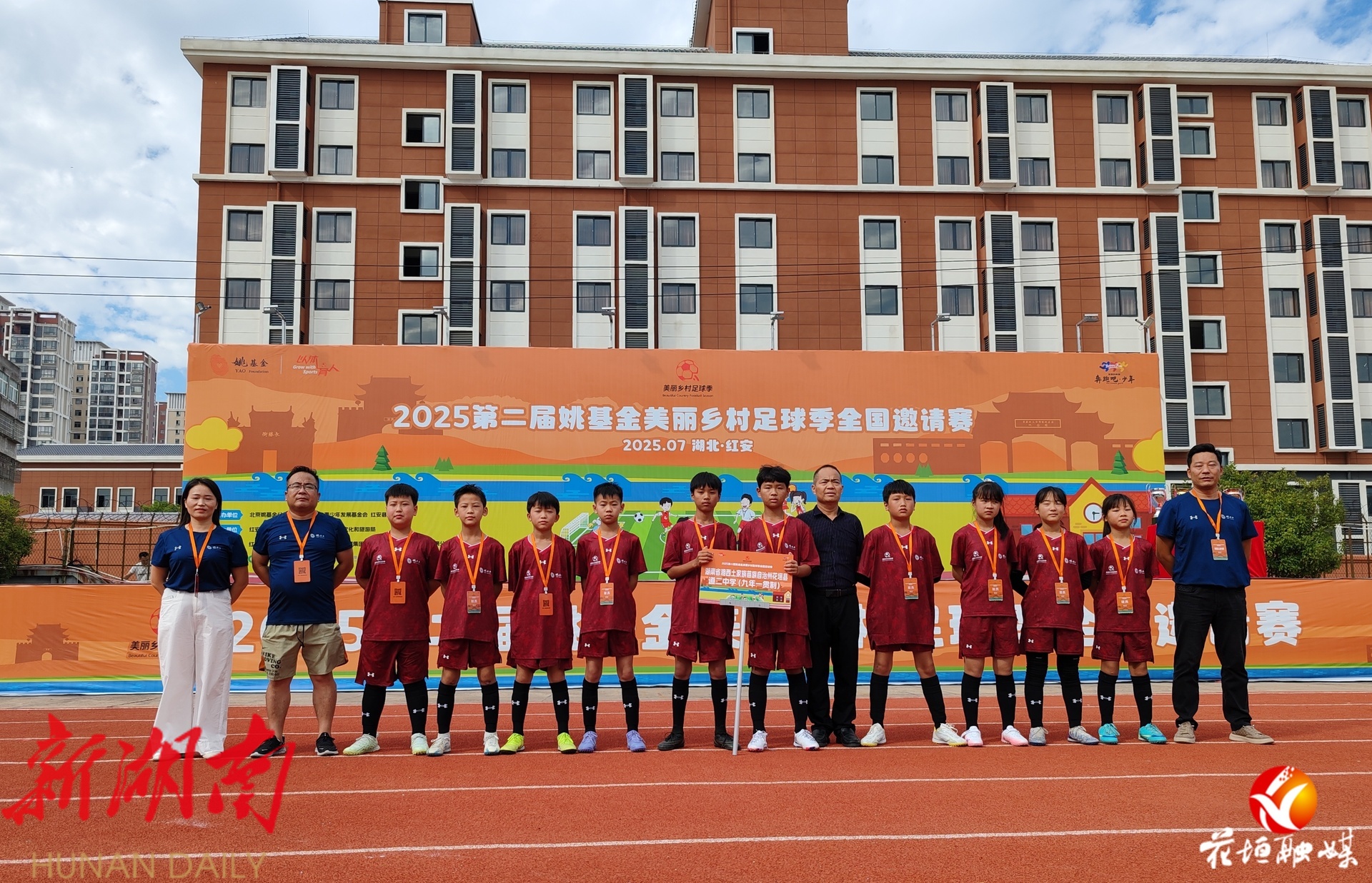 湖南日报·新湖南客户端7月28日讯(通讯员 龙书梅 高帆)今天,2025第二届姚基金·美丽乡村足球季全国邀请赛在湖北省红安县红安国际育才实验学校闭幕。来自全国4个省级赛区16所学校的代表队参赛,花垣县道二学校足球队全程参与赛事。