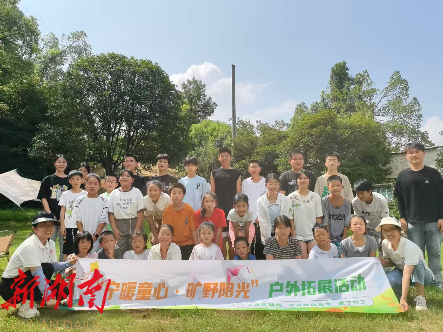 湖南日报·新湖南客户端7月28日讯( 通讯员 陶孜孜) 为切实营造儿童友好的社会氛围, 宁乡市 “宁暖童心·旷野 阳光 ”户外拓展活动于 7 月 28 日 在菁华铺乡龙源湖 · 长啦野营基地 温情开展, 40 名儿童收获欢乐、温暖与成长。