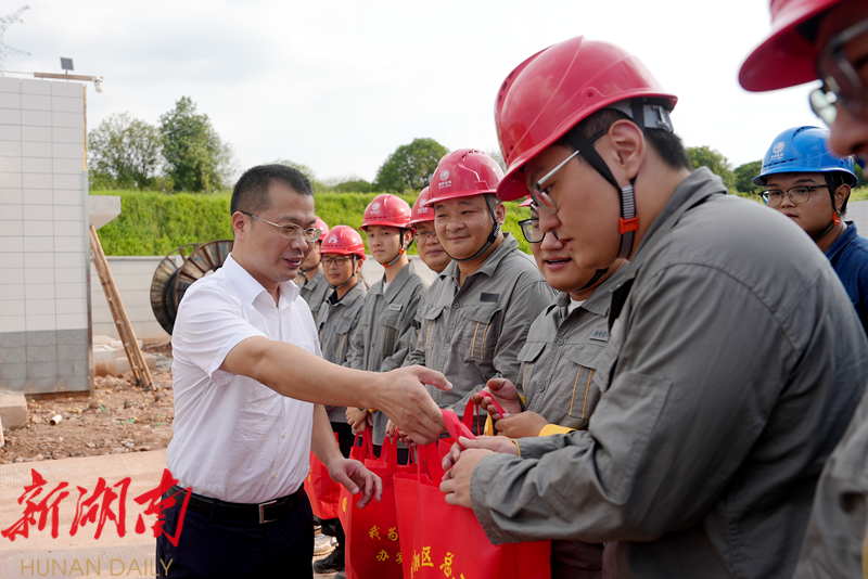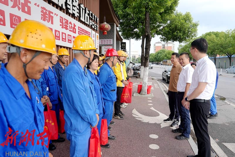 蒸湘融媒7月28日讯(记者 张险波)连日来持续晴热高温,为坚守在一线的劳动者带来了严峻考验。7月28日,蒸湘区开展“工会送清凉 防暑保安康”走访慰问活动,向奋战在高温一线的劳动者致以崇高敬意和衷心感谢,并送上防暑物资,向他们传递区委、区政府的关怀与温暖。区委书记曾梦龙,区领导高兵生、刘朝荣参加慰问。