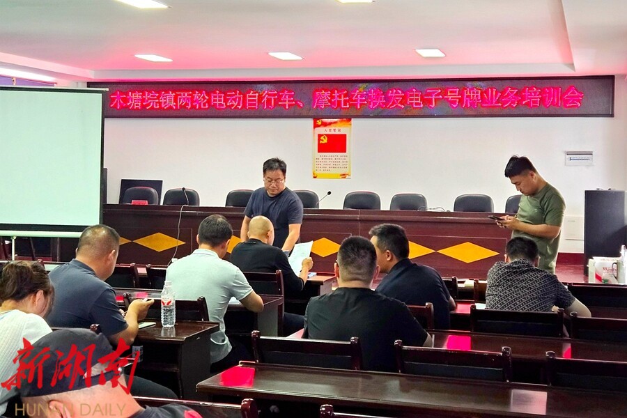 视外桃源客户端7月28日讯(通讯员:胡俊颜) 为扎实推进全镇交通痼疾整治行动,提升电动自行车、摩托车管理精细化水平,7月28日上午,木塘垸镇组织召开两轮电动自行车、摩托车换发电子号牌业务专题培训会。