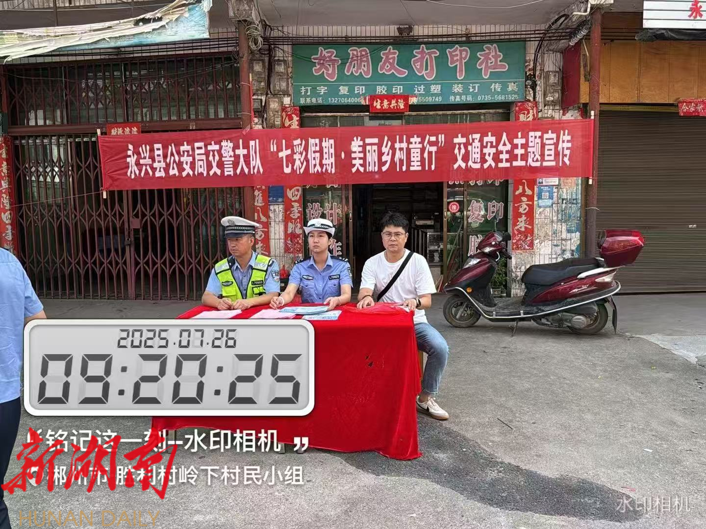 湖南日报·新湖南客户端7月29日讯(通讯员 王义兵 刘君建)7月以来,永兴县湘阴渡街道联合县交警大队开展“七彩假期,美丽乡村童行”交通安全主题宣传活动,通过赶集日集中宣讲、走访留守儿童家庭等形式,为乡村儿童及家长普及交通安全知识。