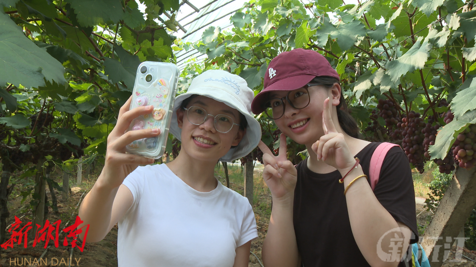 胭脂湖街道十里坪村:绿色葡萄满枝头 游客采摘乐其中