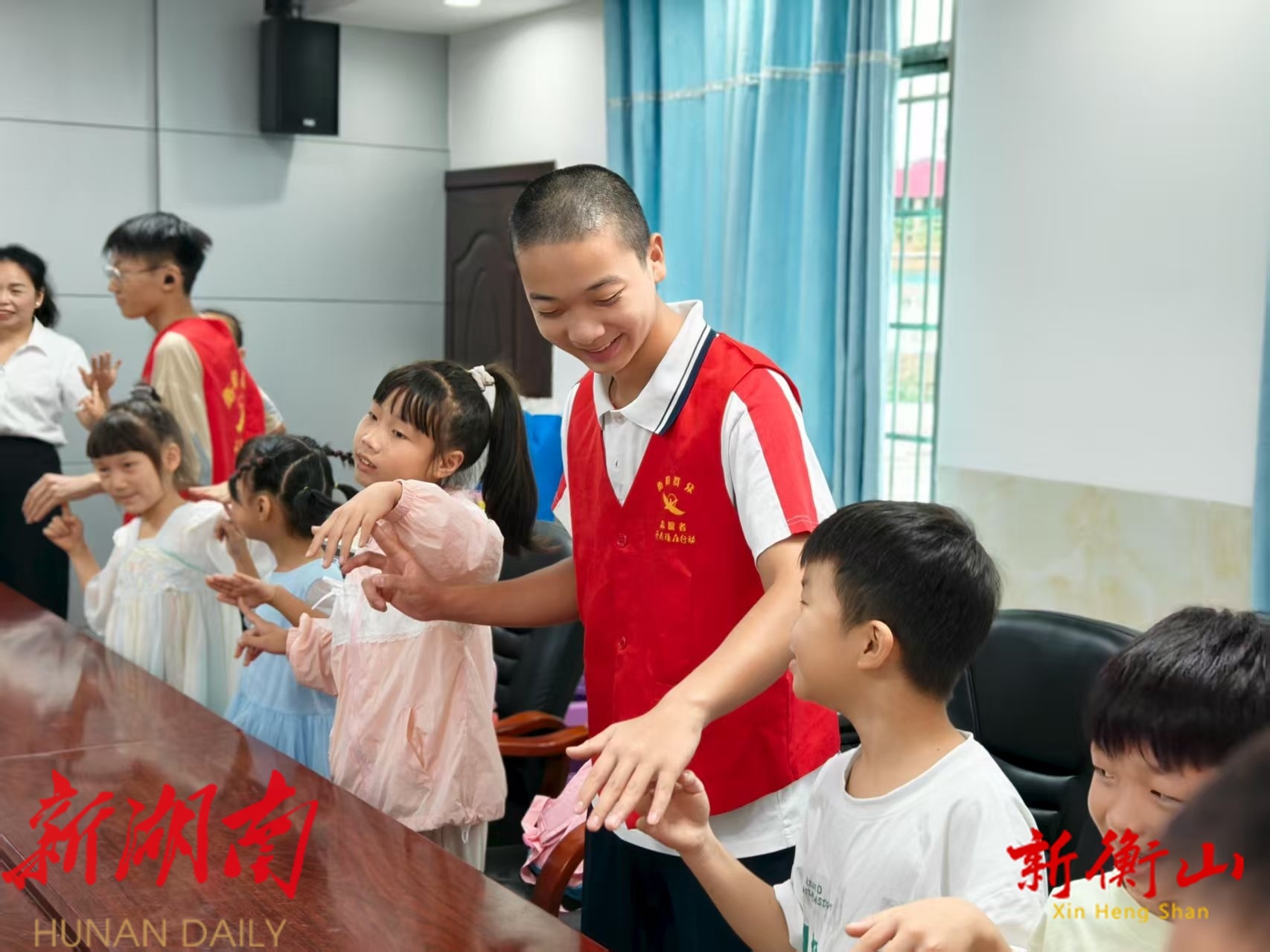 衡山县 开云镇幸福村 党总支书记、村主任 王智勇介绍, 今年,幸福村免费开设了为期两周的留守儿童托管班,现有留守儿童21人。托管班邀请了本村高中、大学生志愿者支教,同时村两委成员轮流照看,开设了作业辅导、绘画、音乐、口才等课程,开展防性侵、防溺水、禁毒等安全知识培训,让留守儿童在寓教于乐中度过一个丰富多彩的假期生活。