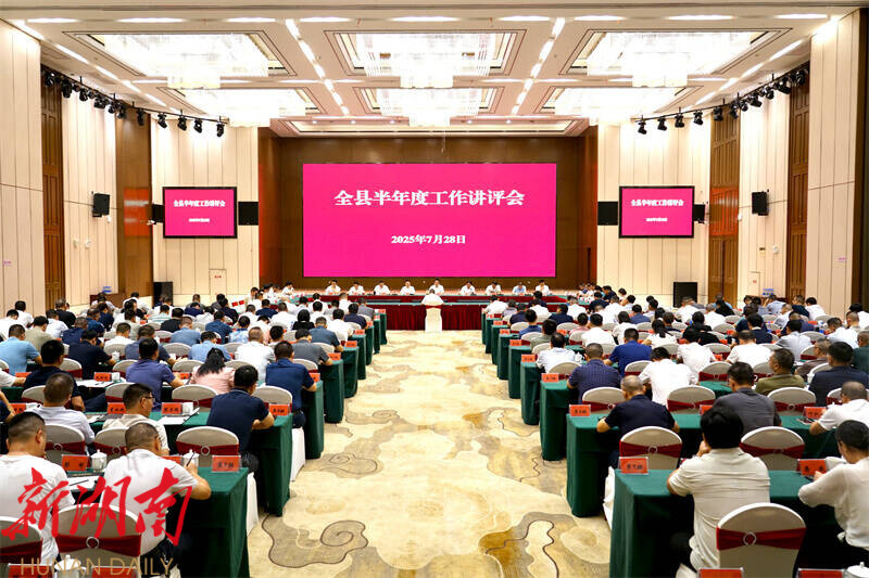 湖南日报·新湖南客户端7月29日讯(通讯员 罗爽 周星亮) 7月28日,全县半年度工作讲评会召开。会议深入贯彻落实党中央决策部署和省委、市委工作要求,分析总结上半年全县经济运行情况,研究部署后段工作,动员全县上下扛牢经济大县挑大梁责任,进一步提振信心、强化举措,奋战三季度、决胜下半年,奋力推动后阶段工作提质增效、争先创优。县委书记肖湘晖主持会议并讲话,县委副书记、县长吴光文作工作讲评并部署后段工作。