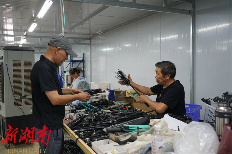 黄沙街镇的产业振兴图景,既有田野间的绿意盎然,更有乡村车间的机器轰鸣。在和谐村,一片废弃多年的砂场悄然蜕变——得益于黄沙街镇“归雁工程”和“就业帮扶车间”建设,湖南特汇雨具有限公司的厂房在此拔地而起。