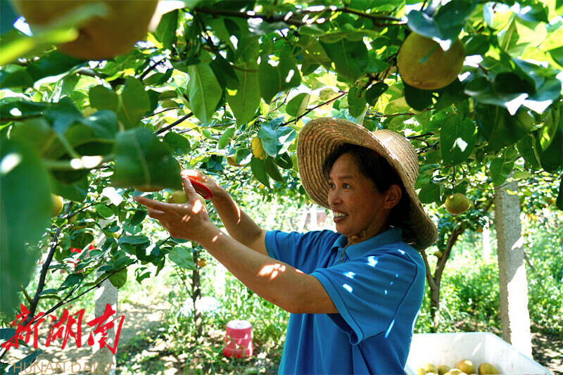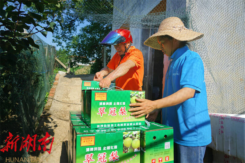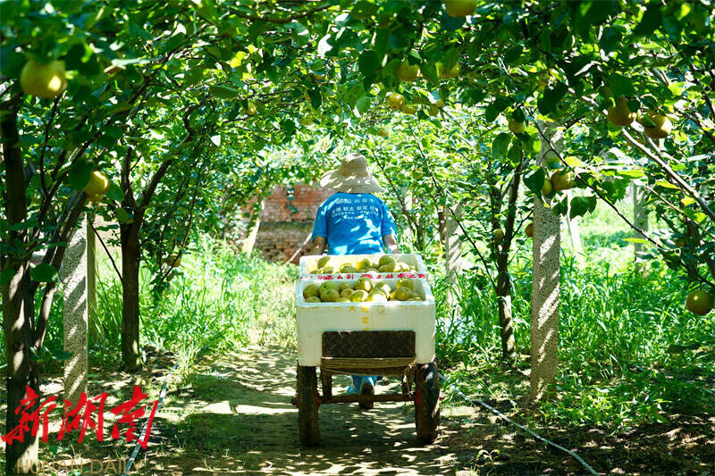 盛夏时节,刘士奇村的梨园里硕果盈枝。沉甸甸的翠冠梨缀满枝头,阳光透过叶隙洒落,饱满的果子泛着晶莹诱人的光泽。刘春华一家人正忙着采摘、装框、送货,汗水浸湿了衣裳,却挡不住眼角眉梢的笑意。