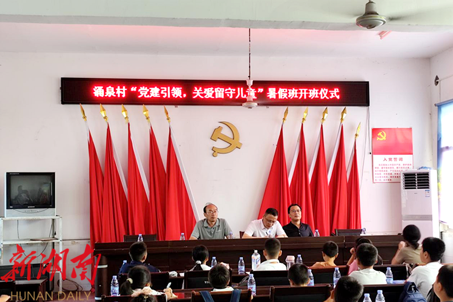 视外桃源客户端7月29日讯(通讯员: 钟家淇 ) 为切实解决外出务工人员家庭的后顾之忧,丰富留守儿童的暑期生活,近日,漆河镇涌泉村举行了“党建引领,关爱留守儿童”暑期班开班仪式。一场由村党组织牵头、乡贤爱心资助、村委精心落实、大学生志愿力量参与的暑期关爱行动正式拉开帷幕,为村里的留守儿童开启了一个安全、充实、快乐的缤纷假期。