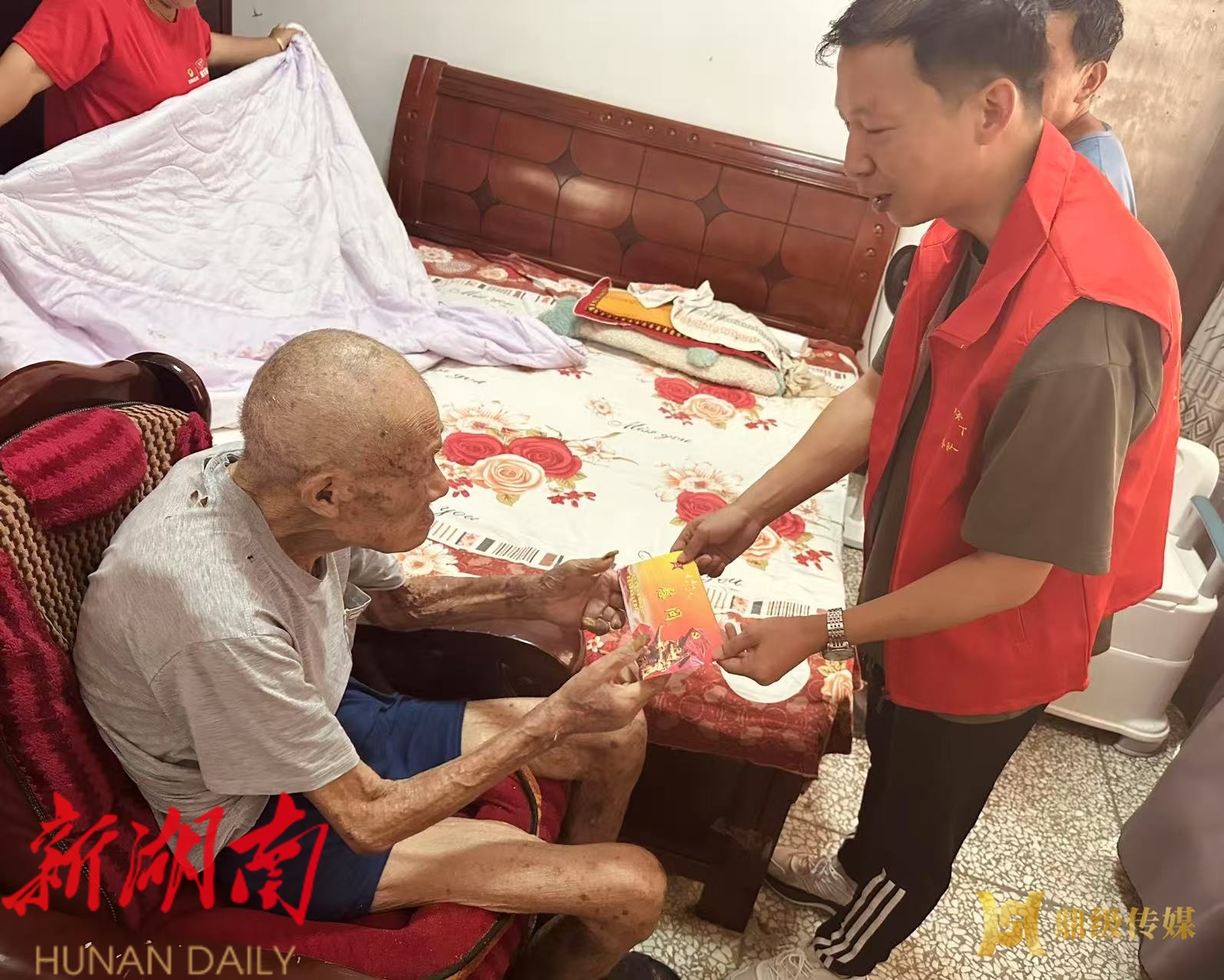 慰问组一行带着精心准备的节日慰问金、米、油等生活必需品,先后走进李友阶、刘进开等抗战老兵家中,听他们讲述那段烽火连天的峥嵘岁月和英勇无畏的战斗故事,对他们为国防事业作出的贡献表示崇高敬意。在清水冲村抗战老兵李友阶家中,这位年逾九旬的老兵仍然精神矍铄,18岁应征入伍的他回忆起当年的战斗经历依然思路清晰、充满激情。他指着珍藏的军功章和老照片,向大家讲述着那段保家卫国的热血青春。在凉水井村刘进开抗战老兵家中,慰问组与老人促膝而坐,拉着家常,关切询问老人的身体状况、生活起居和实际困难。老人回忆起当年在枪林弹雨中与战友们并肩作战,眼神中依然闪烁着坚毅的光芒。