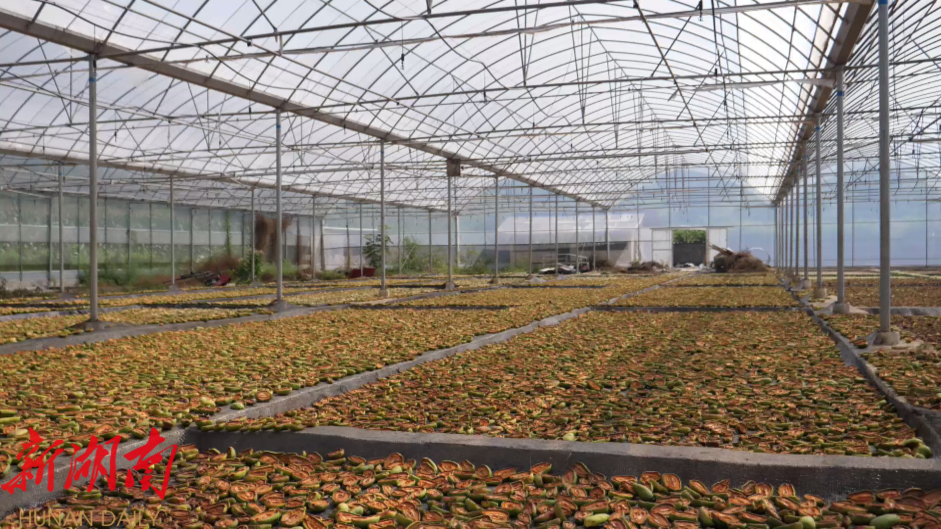 在加工场晾晒区,工人正将切成薄片的木瓜均匀铺开。阳光透过棚顶洒在橙黄色的木瓜片上,蒸腾起带着药香的水汽。“这样的粗加工既延长了保质期,更让木瓜价值倍增。”负责人拿起一片半成品介绍道。