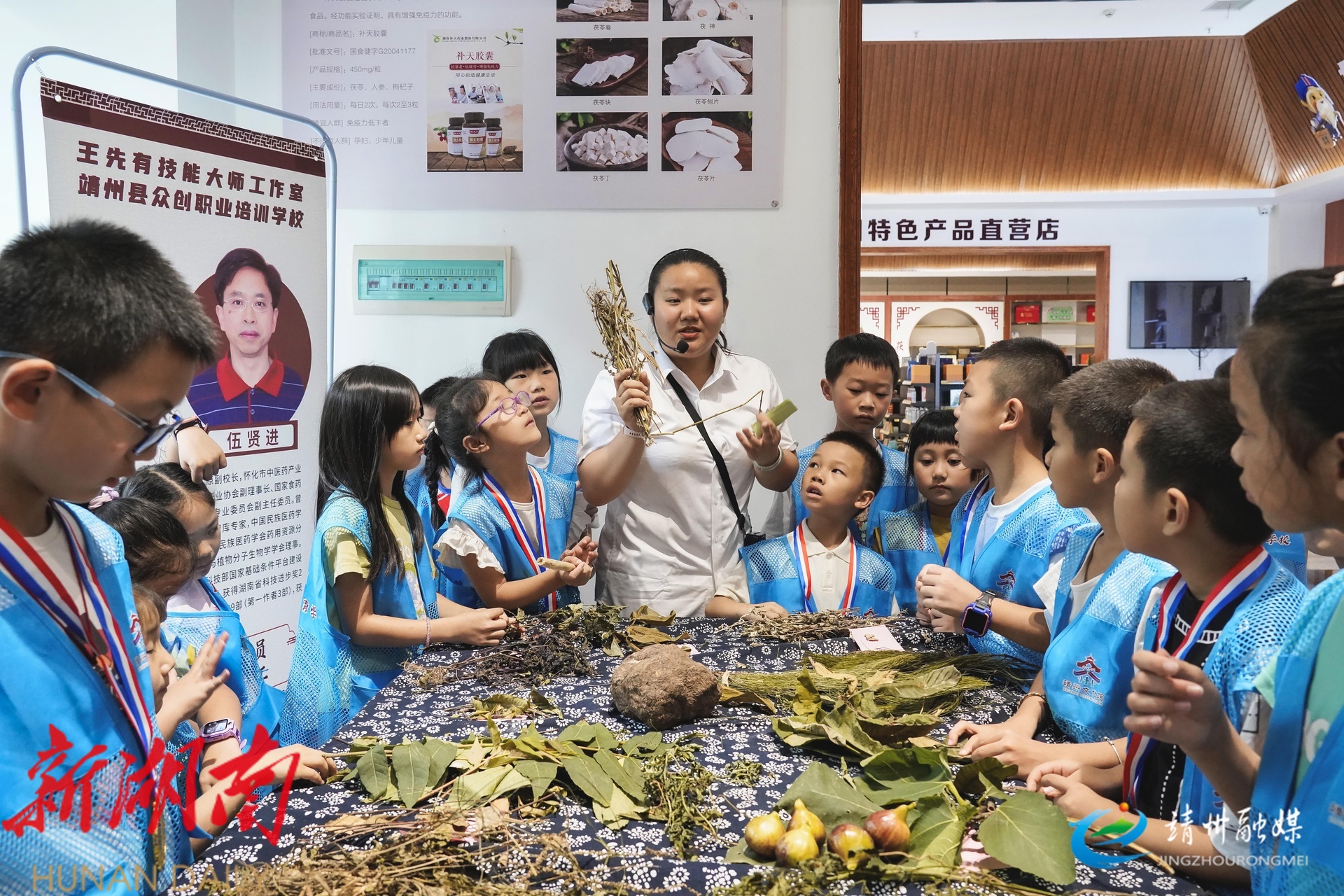 在茯苓加工贸易中心,孩子们了解靖州茯苓发展历史(许志国 摄)