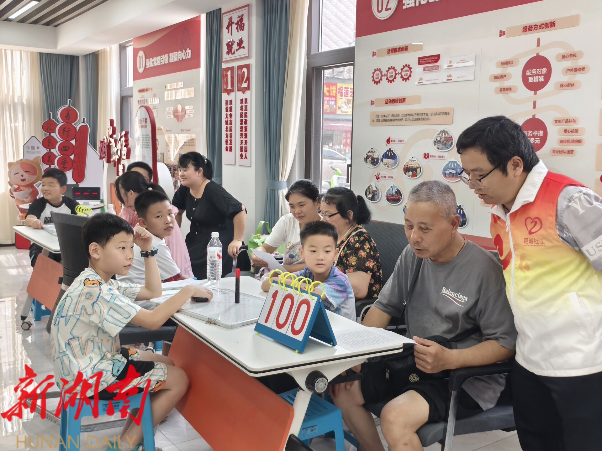 湖南日报·新湖南客户端7月30日讯(通讯员 郭丹)“向前!向前!向前!我们的队伍向太阳——”7月28日上午,开福区四方商贸城党群服务中心活动室传出稚嫩却铿锵的歌声。为庆祝中国人民解放军建军98周年,开福区四方坪街道四季美景社区携手臸诚社会工作服务中心举办“老小同声唱军歌,红色薪火传八一”主题活动,30名“银发族”与“红领巾”面对面、手拉手,在歌声与抢答里完成了一场跨越时空的红色接力。