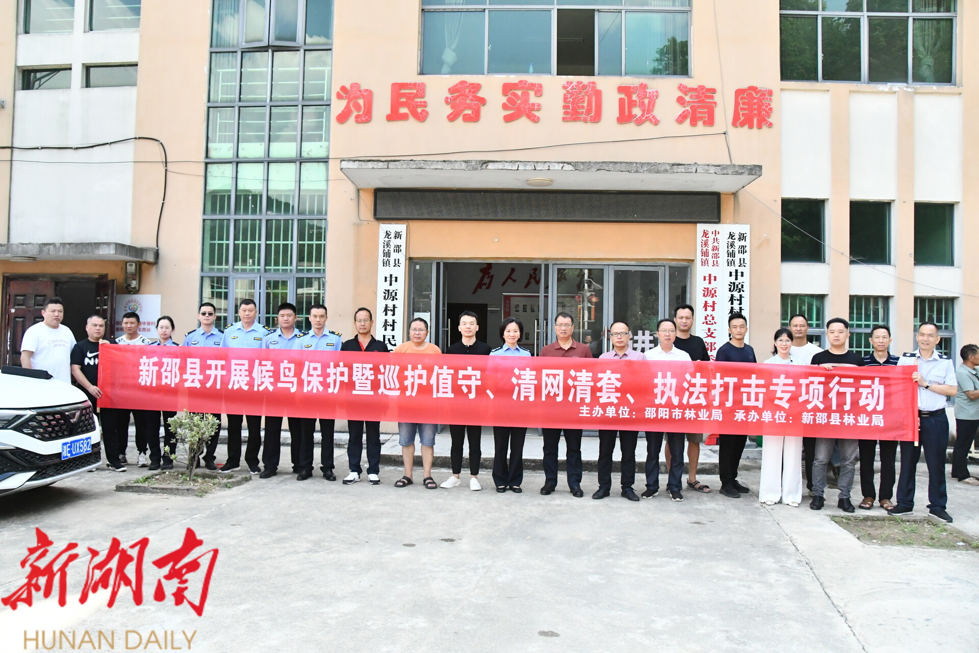 新新邵客户端7月30日讯(记者 寻健 肖晔 通讯员 何国春) 为切实加强野生动物保护,严厉打击非法猎捕、交易等违法犯罪行为,7月29日上午,新邵县林业局联合县森林公安、筱溪国家湿地公园、龙溪铺镇政府及多家志愿者协会,在全县候鸟迁徙通道及周边市场同步启动“巡护值守、清网清套、执法打击”专项行动。