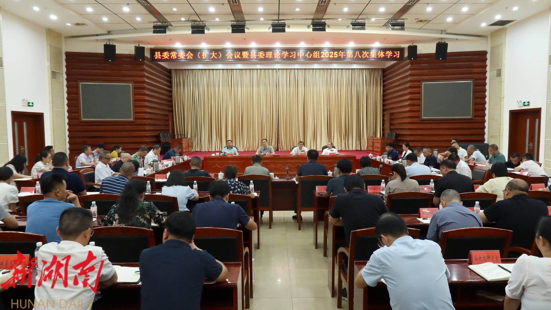 中方融媒7月30日讯 (记者:李建龙 谢文清)7月30日下午,县委书记、县长胡杰主持召开县委常委会(扩大)会议暨县委理论学习中心组2025年第八次集体学习,集中学习习近平总书记在二十届中共中央政治局第二十一次集体学习时的重要讲话以及近期关于学习教育的重要指示精神,深刻领会习近平总书记关于党的自我革命的重要思想,全面落实“五个进一步到位”重要要求,以实际行动深刻领悟“两个确立”的决定性意义、坚决做到“两个维护”。全体在职在家县级领导参加。