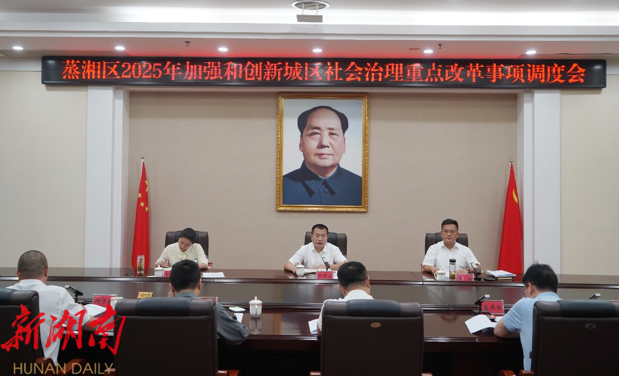 蒸湘融媒7月29日讯(记者 彭妮璇)7月29日,区委书记曾梦龙主持召开蒸湘区2025年加强和创新城区社会治理重点改革事项调度会议。区委副书记、区长李健出席会议。