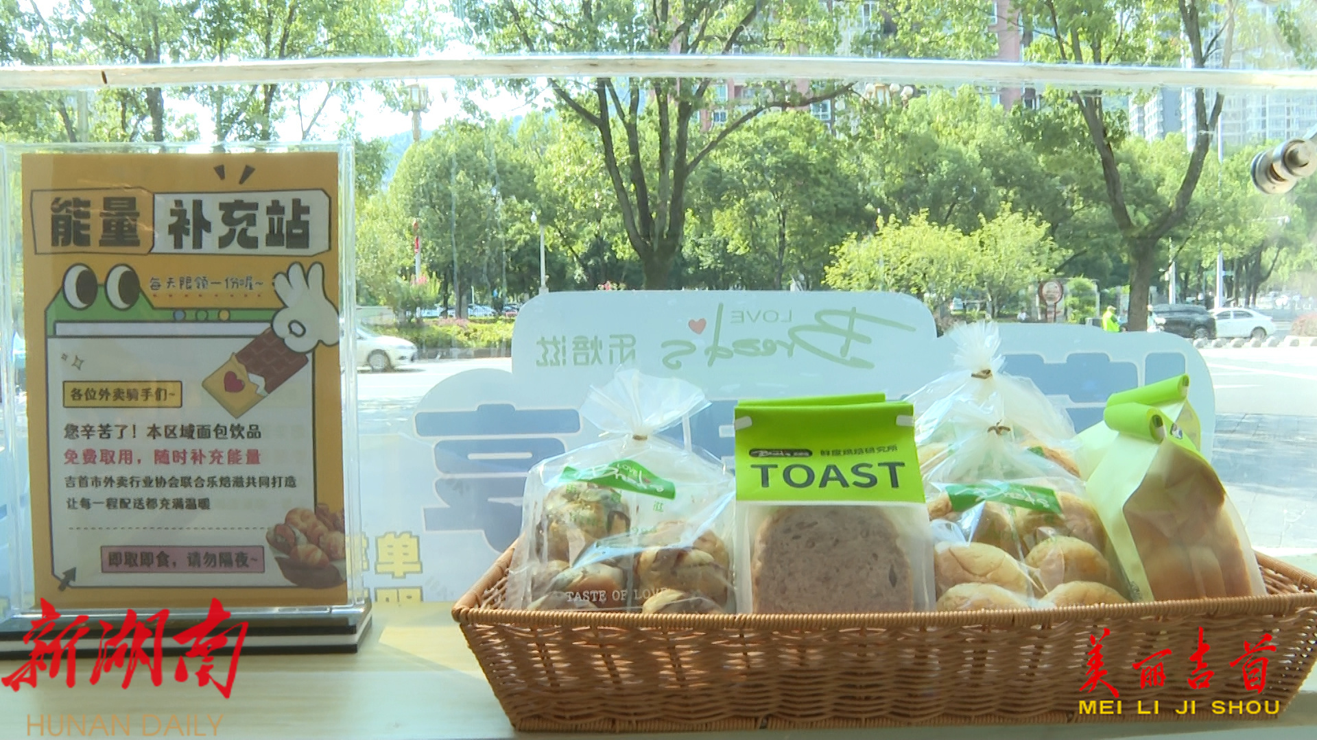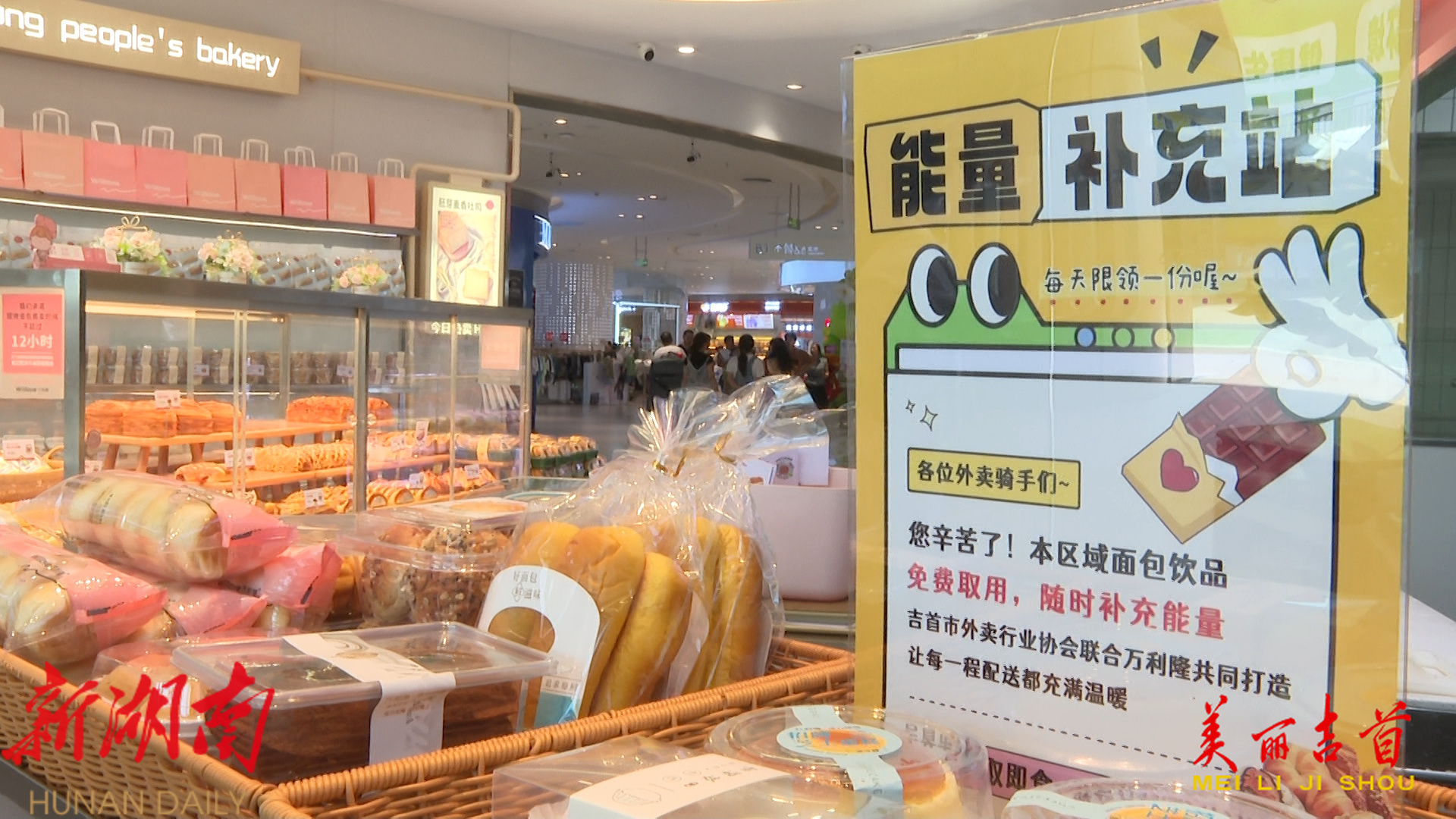 吉首市融媒体中心7月30日讯(全媒体记者 龙佩棂 ) 外卖骑手们穿梭于城市的大街小巷,将一份份餐食、物品准时送达。近日,吉首市外卖行业协会携手本地爱心商家万利隆和乐焙滋,在全市设立11个骑手暖心补给站,为骑手提供免费的面包和饮用水等。