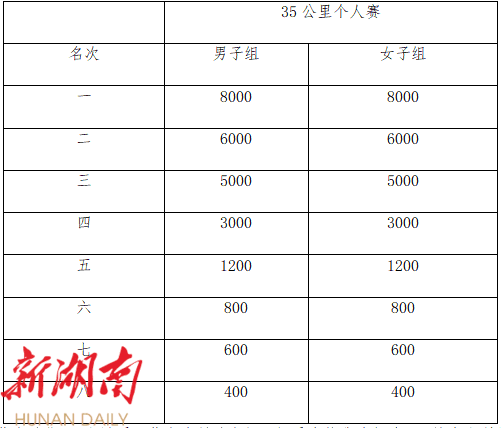 (二)本次比赛总奖金5万,比赛成绩以官方电子计时为准,采用枪声成绩,录取35公里个人赛男女前8名,其中前3名颁发奖杯。