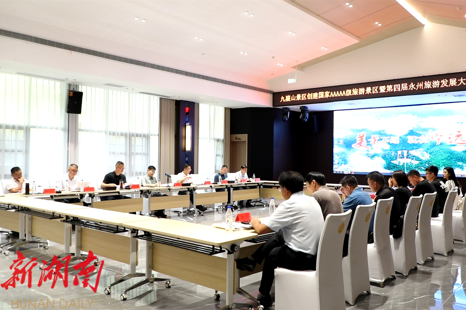 胡勇刚指出,要认清形势,正视差距,统一思想抓推进。要找准问题短板,创出特色办出亮点。要认清当前面临形势,切实增强责任感和紧迫感,紧盯时间节点,紧扣九嶷山景区创建国家5A级旅游景区和第四届永州旅游发展大会“两条主线”,实现“办会兴城”与创建工作通过评审“两个目标”。
