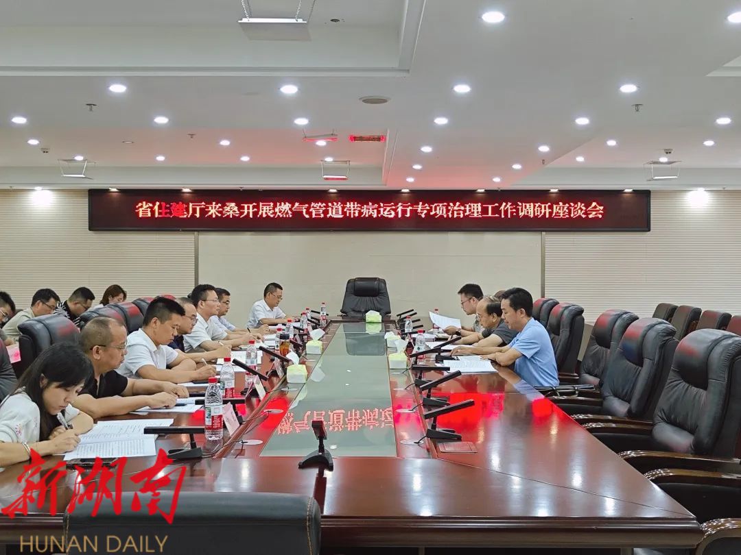 湖南日报·新湖南客户端7月30日讯(通讯员 朱丽娟)7月30日,省住房和城乡建设厅党组成员、总工程师易继红一行来桑调研燃气管道带病运行专项治理工作并召开座谈会,省住房和城乡建设厅城建处副处长周铁朋,市人民政府副秘书长汪涌,县委副书记、县长梁高武,县委常委、县委办主任钟德华参加座谈。