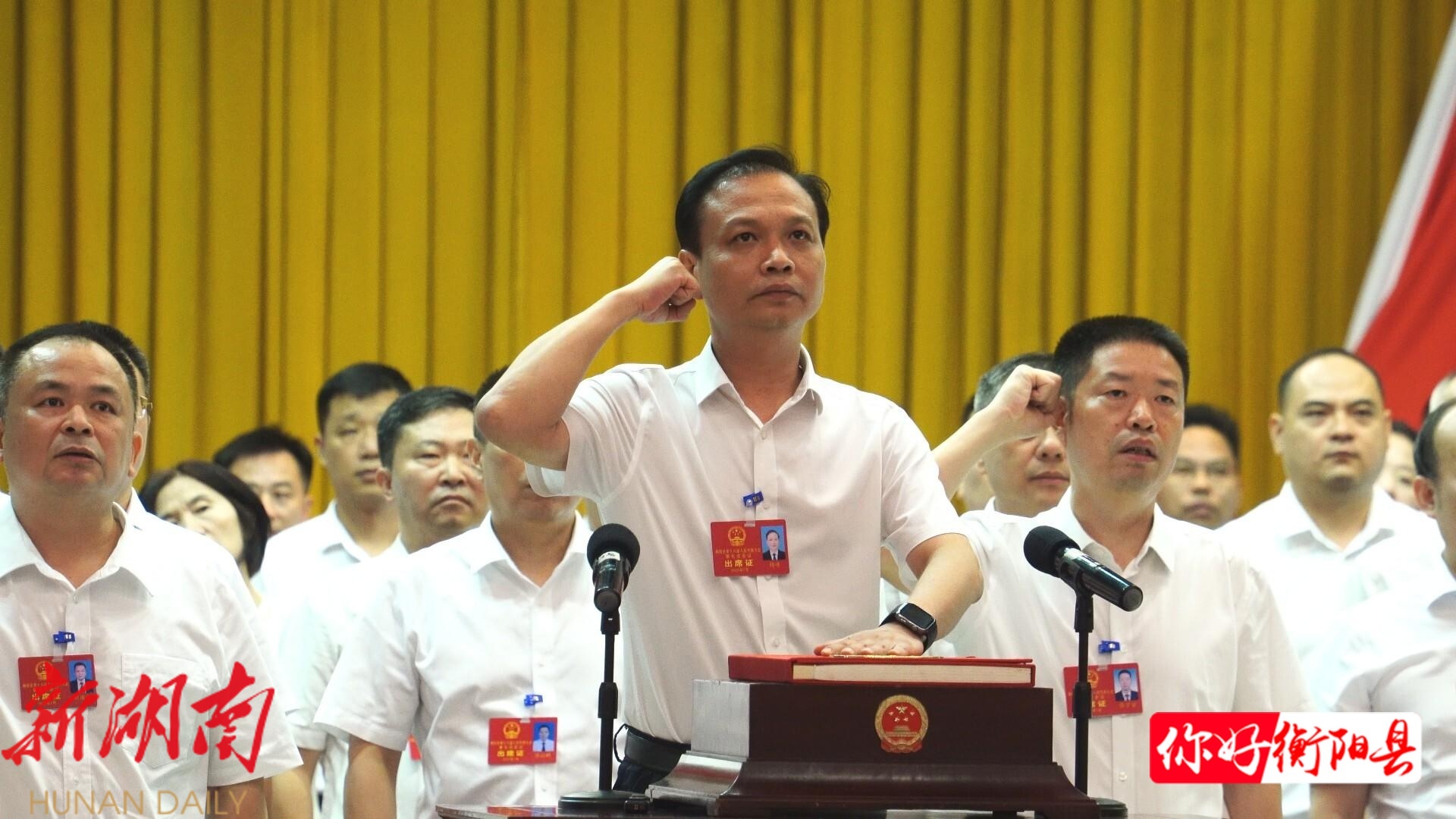 会议通过无记名投票方式依法补选杨峰为衡阳县人民政府县长,张宇宙、刘国荣为衡阳县人大常委会副主任。随后,新当选的衡阳县人民政府县长杨峰,衡阳县人大常委会副主任张宇宙、刘国荣在与会全体代表的见证下向宪法宣誓。