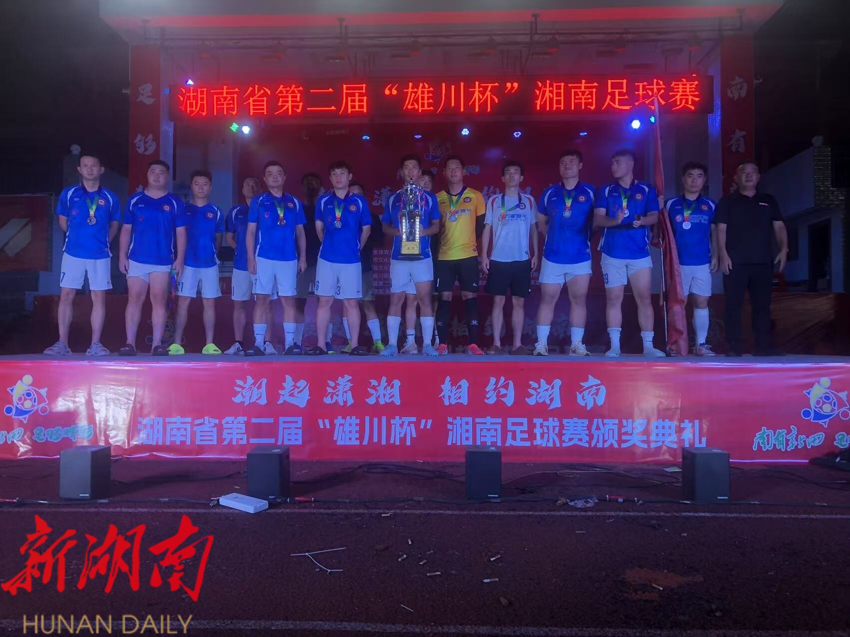 新桂阳7月31日讯(通讯员 李芳红 张胡君)7月27日晚,湖南省第二届“雄川杯”湘南三地县区足球邀请赛迎来巅峰对决,桂阳队与临武队在决赛赛场展开激烈角逐。最终,桂阳队虽憾负对手获得亚军,但这支队伍在绿茵场上挥洒汗水、追逐梦想的身姿展现出了强劲实力与拼搏精神,已成为桂阳县全民健身事业蓬勃发展的鲜活注脚。