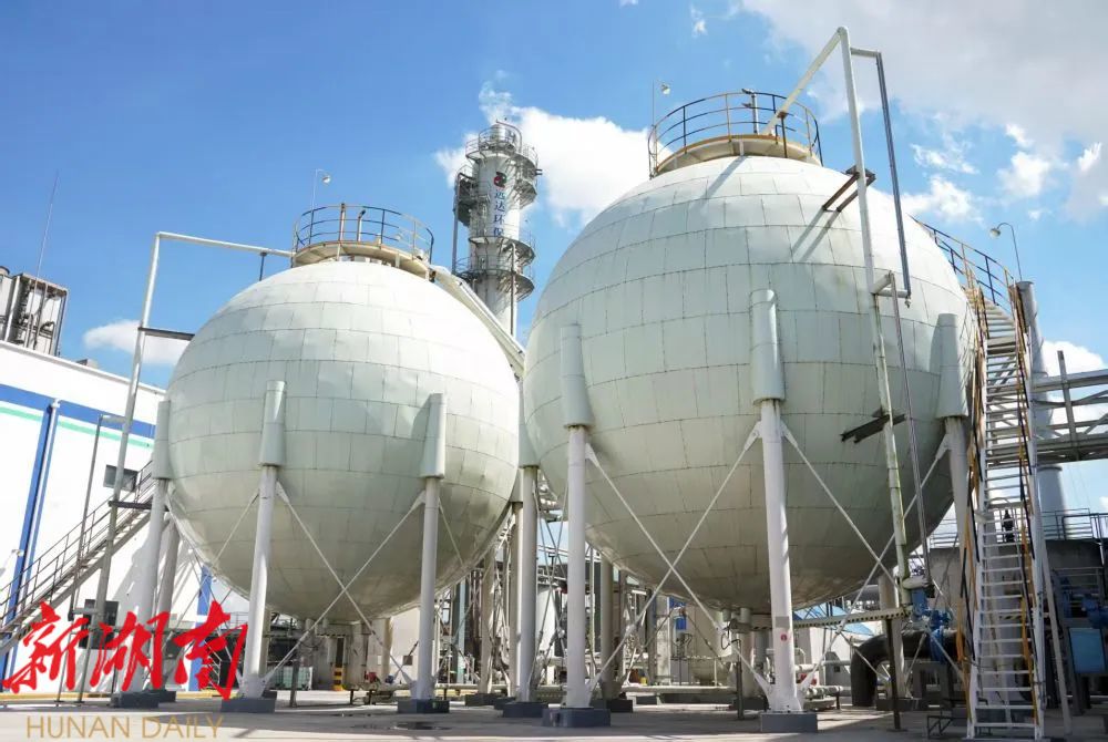 国家电投上海长兴岛热电有限责任公司里的球形碳储设备。 图源新华社