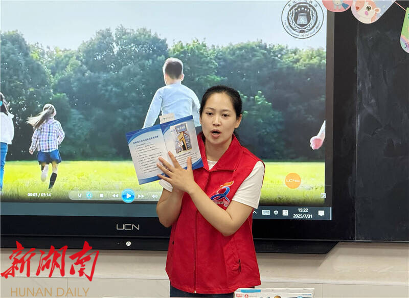 湖南日报·新湖南客户端7月31日讯(通讯员 周昱君) 为持续深化“护苗·绿书签”行动,筑牢未成年人健康成长防线,7月31日,县“扫黄打非”办联合团县委、县新闻出版局、县教体局、县文化市场综合行政执法大队及县新华书店等部门的志愿者,走进职工子女暑期公益托管班,开展“护苗·绿书签”主题宣传活动。
