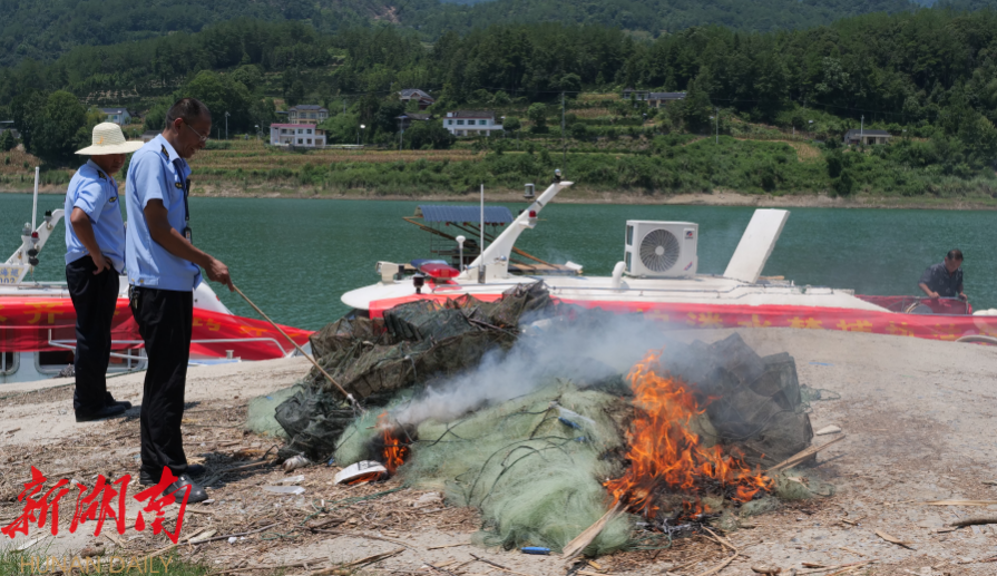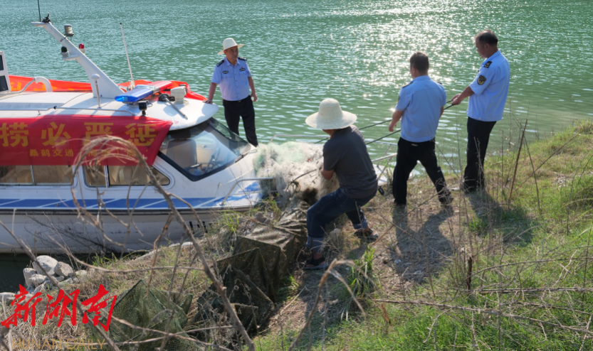 湖南日报·新湖南客户端7月31日讯(通讯员 郭军 王晶晶)为严厉打击非法捕捞行为,切实保护溇水流域渔业资源与生态环境,7月30日,一场跨省联合、多部门协同的河道“清网行动”在桑植县官地坪镇与湖北省鹤峰县铁炉白族乡交界的重点水域展开。