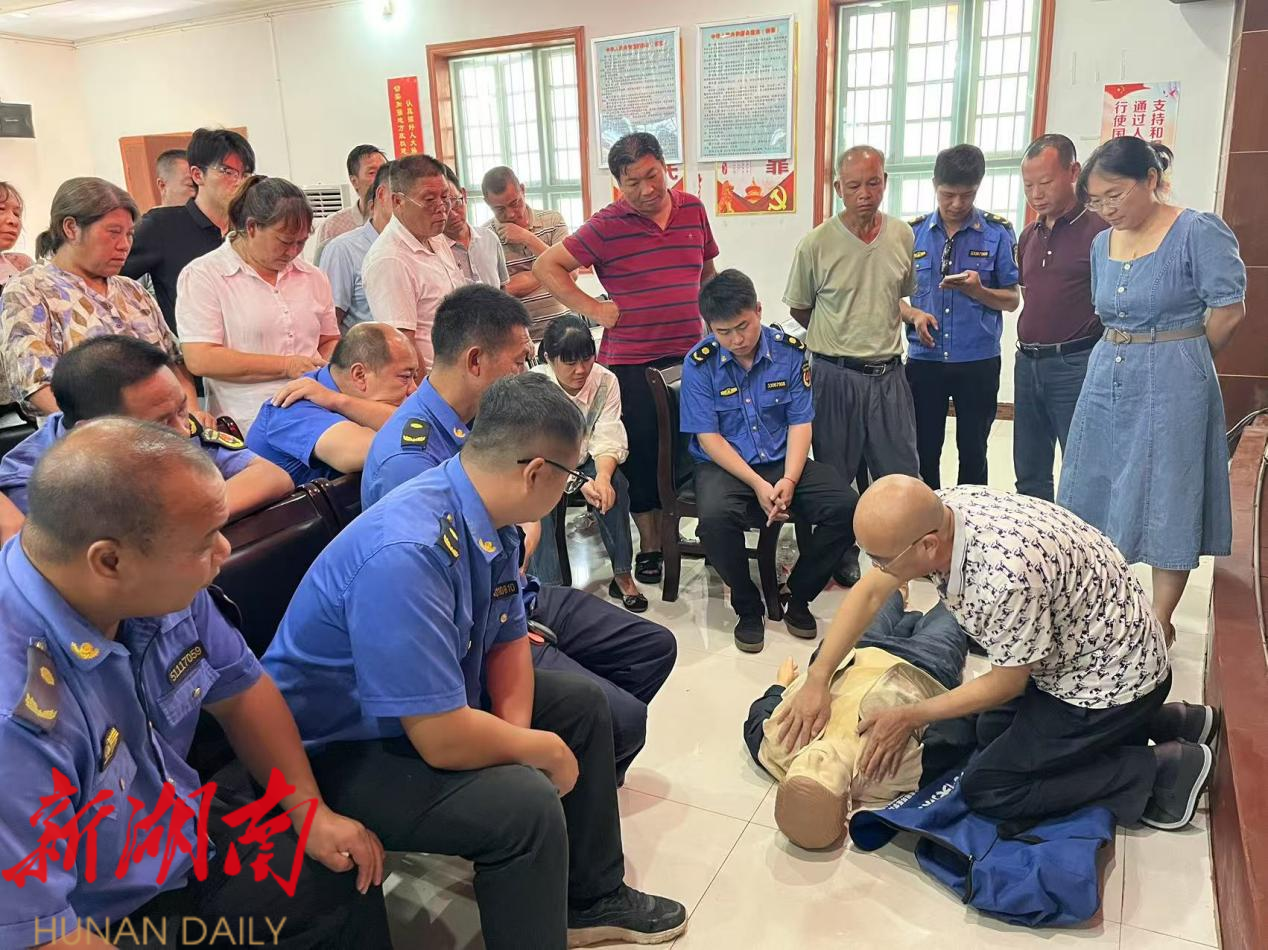湖南日报·新湖南客户端7月31日讯(通讯员 刘仁) 7月30日,宁远县中医医院专业急救团队走进冷水镇开展“第一目击者”应急救护技能培训。镇村干部、村辅警等近百名学员积极参与。