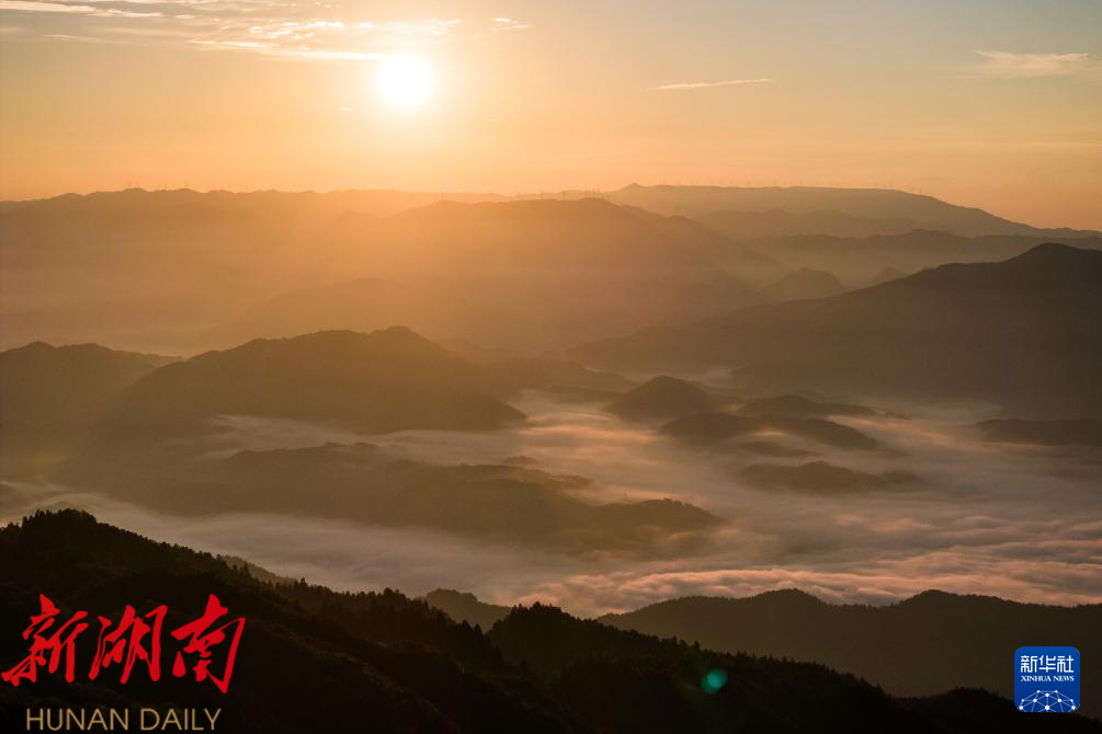 这是7月30日在湖南怀化雪峰山国家森林公园拍摄的日出景观(无人机照片)。新华社记者陈思汗摄