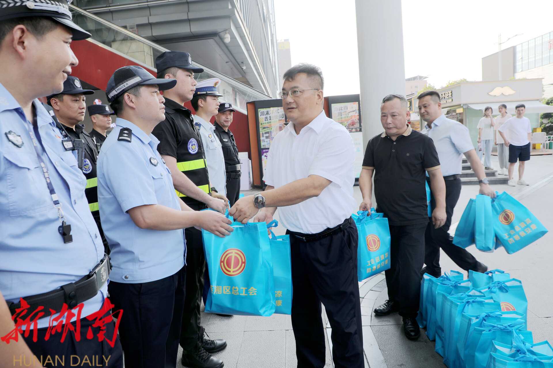 蒸湘融媒7月31日讯(记者 赵娓娓)7月31日,蒸湘区组织开展“工会送清凉 防暑保安康”走访慰问活动,看望慰问高温作业一线劳动者,向高温酷暑下坚守岗位、奋战一线的广大劳动者致以崇高敬意和亲切问候。区委副书记、区长李健,区领导龙金参加活动。