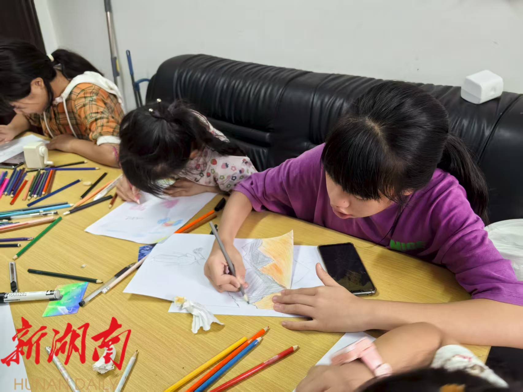 中方融媒8月1日讯 (通讯员:贺令香 ) 7月30日,中方县新建镇民政社工站开展以“童彩绽放”为主题的绘画小组活动。