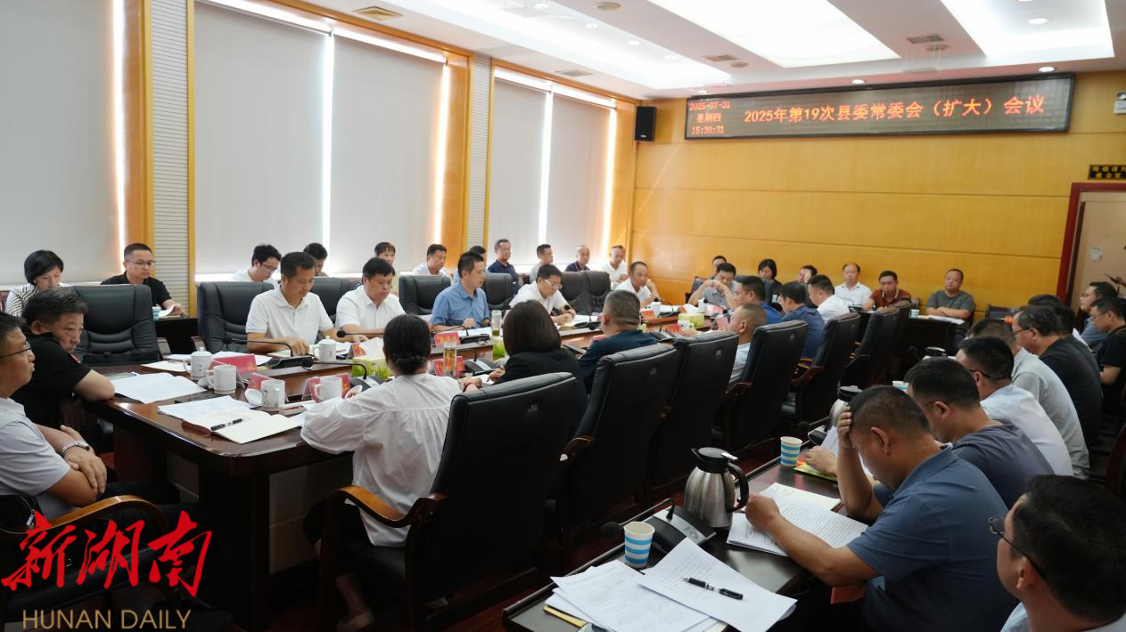 新湖南客户端8月1日讯(通讯员 郑湘)7月31日,县委书记滕朝辉主持召开县委常委会(扩大)会议,传达学习习近平总书记关于中国人民抗日战争和世界反法西斯战争的重要论述,在中央财经委员会第六次会议上的重要讲话精神,在《求是》杂志发表的重要文章《团结奋斗是中国人民创造历史伟业的必由之路》《坚定不移推进高水平对外开放》精神,听取全县“五项工作”、安全生产、生态环境保护等情况汇报,审议有关文件。