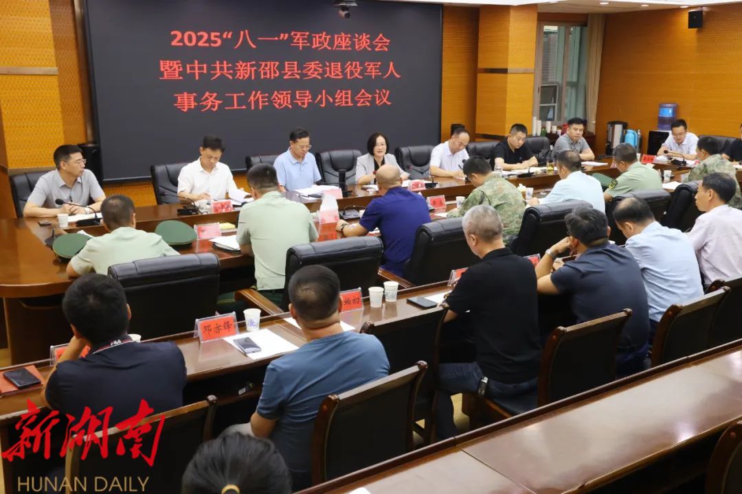 新新邵客户端7月31日讯(记者 屈凌芙蓉 唐文峰)在“八一”建军节即将到来之际,7月30日,新邵县召开2025年“八一”军政座谈会暨中共新邵县委退役军人事务工作领导小组会议,县领导与驻县军(警)部队代表欢聚一堂,共同庆祝建军98周年,共叙军民鱼水情谊,共谋军地发展新篇。县委书记、县人武部党委第一书记黄海蓉出席并讲话,县委副书记、县长谢小军主持。县委副书记、统战部部长王振波,县领导贺雄、曾律玮、罗伟宏、蒋命贤、黄洁辉,以及驻县军(警)部队相关领导出席。