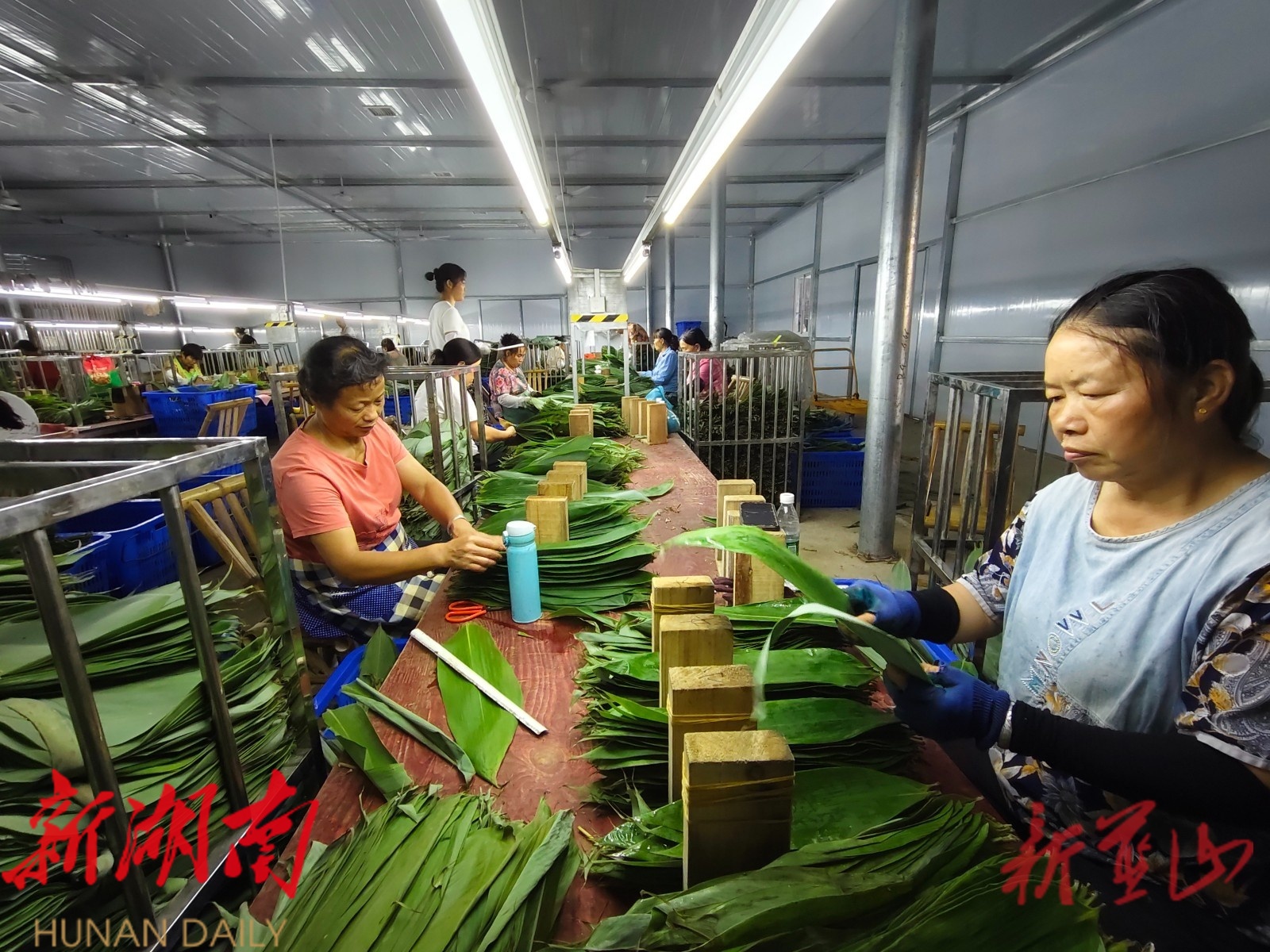 7月28日,走进湖南粽鑫生态农业开发有限公司就业帮扶车间,一股棕香扑鼻而来,30多名工人正忙着对新鲜粽叶进行分级、捆扎、装框、烘烤打包、等待外运。该车间负责人黄昊明介绍,原来他是在外经商,后来得知家乡出台了一系列扶持在外有志之士返乡创业的政策,便毅然返乡成立了湖南粽鑫生态农业开发有限公司,申报了就业帮扶车间,如今,在蓝山县委、县政府的扶持下,车间规模已从刚开始的1600平方米,扩大到了现在的2000平方米,新增加冷库1600立方米,新建设空调车间300平方米,可容纳50名群众就近就业,下一步,计划继续扩大车间生产规模,带动更多群众在“家门口”就业增收。