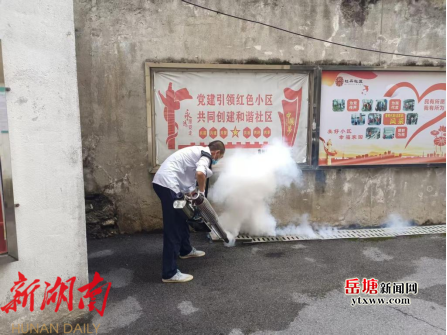 岳塘融媒7月30日讯 (通讯员:廖卓鹏)为进一步塑造洁净安全的居住环境,有效抑制蚊虫滋生,近日,岳塘区霞城街道联合病媒生物防治公司,在辖区各小区集中开展了夏季病媒生物消杀活动。