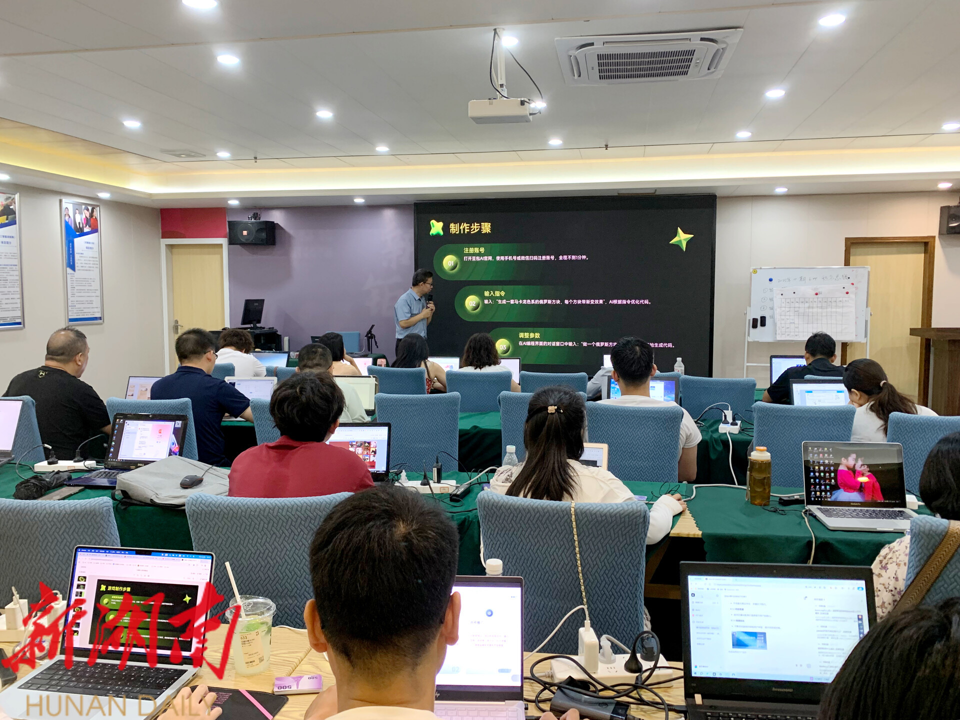成鹏是蒸湘区一家家政公司的创始人,也是2025年蒸湘区第4期人工智能训练师培训班的一名学员。今年年初,原本从事物流行业的他感觉遇到创业瓶颈,个人职业竞争力不足。于是,在朋友的介绍下,报名了蒸湘区闳智职业培训学校的AI培训课程。