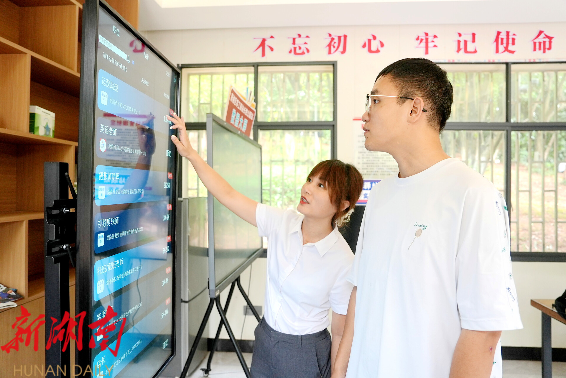 ▲求职者正在AI“职”播机上找寻理想岗位(蒸湘融媒供图)