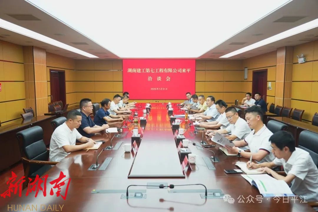 平江融媒7月31日讯(记者 谢鸿)7月31日,湖南建工第七工程有限公司来平洽谈合作,县委书记刘正仁主持会议并讲话,县委副书记、县长彭方建,副县长夏海出席会议。