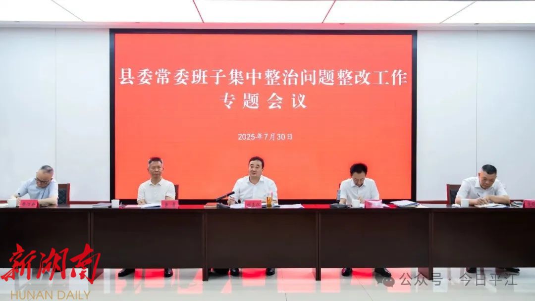 平江融媒7月30日讯(记者 雷怡慧)7月30日,县委书记刘正仁主持召开县委常委班子集中整治问题整改工作专题会议,深入学习贯彻习近平总书记关于作风建设的重要论述精神,全面落实省委、市委有关会议精神,对集中整治问题整治工作进行再动员、再部署、再推进,推动学习教育走深走实、见行见效 。县委副书记、县长彭方建,县委副书记、统战部部长鲁勇,县人大常委会主任凌晓明,县政协主席熊江新等出席会议。